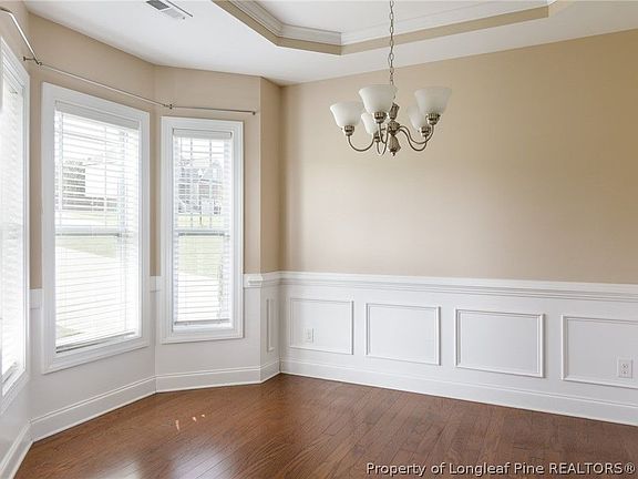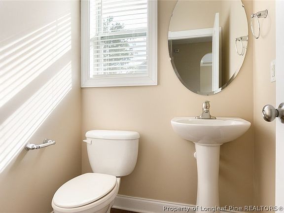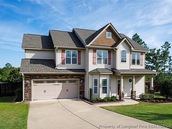 AVAILABLE FOR MOVE IN IMMEDIATELY! Darling home just 20 minutes from north side of Ft Bragg! Home is in desired neighborhood of Trotters Ridge with pool and park. Features 4 bedrooms and 2 1/2 bathrooms. Downstairs has hardwood in foyer, formal dining room, and half bathroom. Kitchen has granite, stainless steel, and tile backsplash. Breakfast nook and breakfast bar attached to kitchen for even more seating. Living room has a gorgeous gas fireplace. Upstairs is 3 guest bedrooms (one is a bonus room size) and full guest bathroom. Fourth bedroom is Master bedroom with a sitting area. Master suite has dual vanity, garden tub and separate shower, and walk in closet. Home is on a half acre with fully fenced in backyard. Get ready to entertain with a covered patio, huge deck, and additional fire pit patio! Dogs allowed, NO cats. To message for more info or apply go to: