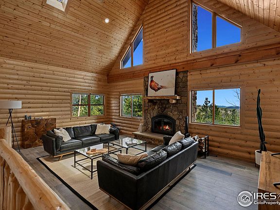Welcome to your expansive ranch-style retreat with Stunning Views of the Rocky Mountain Front Range. This exquisite cedar-sided home is gracefully situated on a gently sloping lot tucked in by a flourishing stand of trees, offering picturesque vistas of the valley below. Surrounding the property is HOA land, ensuring a tranquil environment by restricting the construction of neighboring homes nearby. This Beautiful home exemplifies mountain living at its finest. The homeowner has made Massive updates including a $20K whole-home backup generator, top-of-the-line appliances including a $12K Blue Star Range, a tankless hot water heater, and a new furnace. Further enhancements include updated floors, poured cement walkways, countertops, backsplashes, as well as new hardware throughout. The centerpiece of this extraordinary mountain retreat is the expansive step-down living room, boasting a charming T&G knotty pine cathedral ceiling and a majestic wood-burning rock fireplace, evoking a cozy cabin ambiance with interior log siding walls. The primary suite offers a generous and airy layout complete with a private bath. The meticulously crafted custom kitchen showcases stainless steel appliances, a gas range, a breakfast bar, a pantry, and updated flooring, enhancing functionality and aesthetics. Additionally, a remarkable 20X18 loft upstairs provides versatile space for additional sleeping accommodations or a Rec Room. Completing this exceptional residence is a two-car attached garage and a detached 560 SQFT heated garage/shop with office space, offering ample room for vehicle storage and creative projects alike. Enjoy Biking, hiking, snowshoeing, fishing, horseback riding and more all in your own neighborhood.