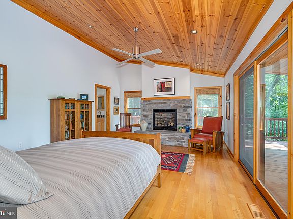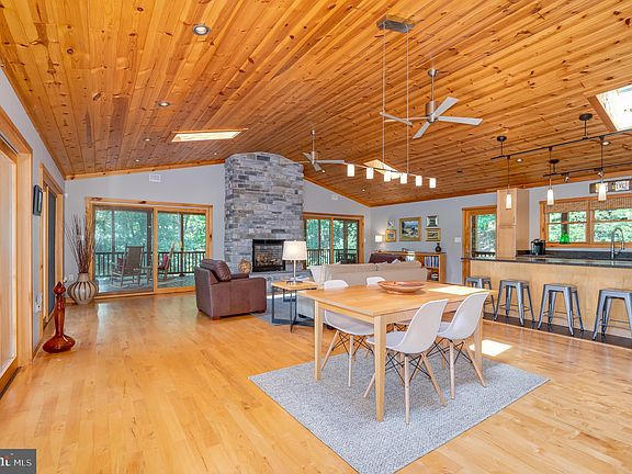 Discover this stunning 3BD/3.5BA pristine cabin/lodge nestled on 7.56 acres in the scenic Lost River Valley, just 100 miles from Washington, DC. Offering breathtaking mountain views, this property combines rustic charm with modern luxury, making it an ideal retreat or year-round residence. Luxury abounds with high-speed fiber optic internet, a propane fireplace in the primary bedroom, and all three bedrooms featuring ensuite baths. Top-of-the-line Mitchell Gold furnishings and most electronics convey, making this home nearly turnkey for its new owner(s). Exceptional craftsmanship is evident throughout, with vaulted pine ceilings, Pella windows and doors, bespoke tiled showers with glass, modern iron stairwell railings, granite countertops, and maple floors. The upper level includes a modern kitchen featuring a wine fridge and Jenn-Air appliances, a living room with a stone propane fireplace, and a primary bedroom with a spacious walk-in closet, an ensuite bath with a walk-in shower and bathtub. The lower level features two private bedrooms each with ensuite baths, a sitting room/den for relaxation, a private office for telecommuting, and a laundry room with utilities. Both levels boast large screened porches, perfect for enjoying the serene surroundings. The home is well-maintained and has seen recent upgrades, including a water softener, new HVAC in 2020, a seamless metal roof in 2021, and recent exterior house staining in 2023. Energy efficiency is ensured with 6-inch insulation on exterior walls and an instant propane hot water heater. Local amenities are abundant, with restaurants, shops, and markets in Lost River, Wardensville, and Moorefield, and convenient access to Winchester (45 minutes), Harrisonburg (60 minutes), and Washington, DC (100 minutes). This exceptional cabin stands out among its peers, offering a blend of tranquility and modern comfort. Schedule a visit today to experience the luxury and serenity of Lost River Valley living!