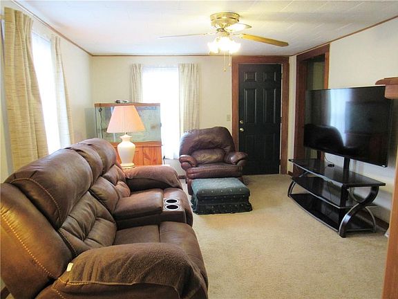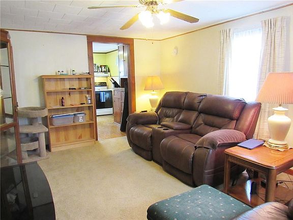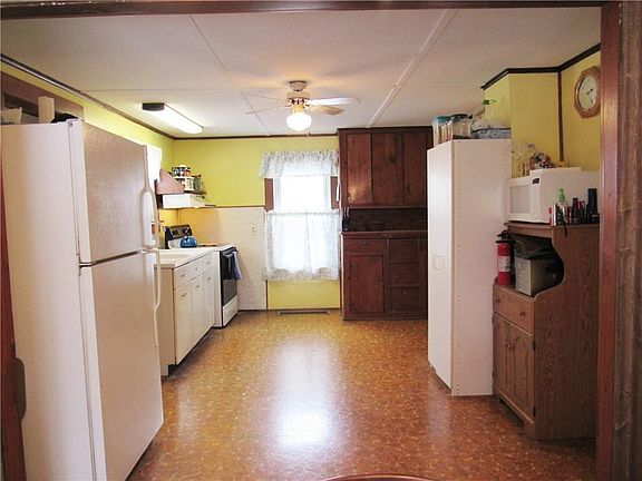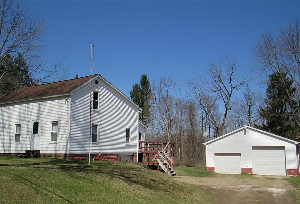 LOOKING FOR COUNTRY LIVING, ENJOY THE PEACEFUL SURROUNDING HERE! OFFERS 3 BEDROOMS, 1 BATH, 2 CAR DETACHED GARAGE ON 1.6 ACRES. FIRST FLOOR MASTER BR. OPEN KITCHEN TO DINING ROOM FEATURES BUILT IN HUTCH CABINET, REFRIGERATOR, ELECTRIC RANGE & MICROWAVE. FIRST FLOOR FULL BATH WITH NEW VINYL FLOORING, UPDATED TUB/SHOWER SURROUND & COMMODE. SPACIOUS 1ST FLOOR LAUNDRY WITH EXTRA STORAGE SPACE. UPDATES: ROOF, GARAGE ROOF, OVERHEAD DOORS, GLASS BLOCK WINDOWS, KLEIN BASEMENT SYSTEM & MORE.
