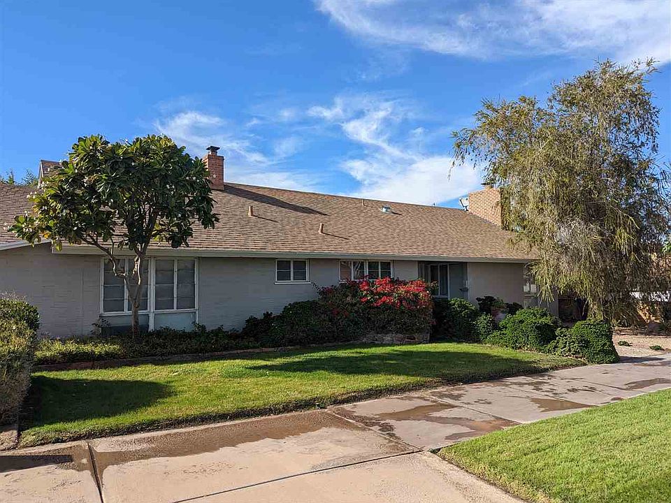 Amazing & unique Pool home with large lot & beautiful landscaping. The main house is 3 bedrooms,2 bathrooms & over 2000 sq. ft. Equipped with a basement/storage cellar, 2 fireplaces & an office! Family room with wet bar, basement access & built in book cases/storage cabinets. 680 Sq. Ft. 1 bedroom & 3/4 bathroom guest house in the backyard. 2 covered patios & swimming pool perfect for entertaining! Detached carport in backyard with alley access as well as a huge single/double combo gate! Central Location!