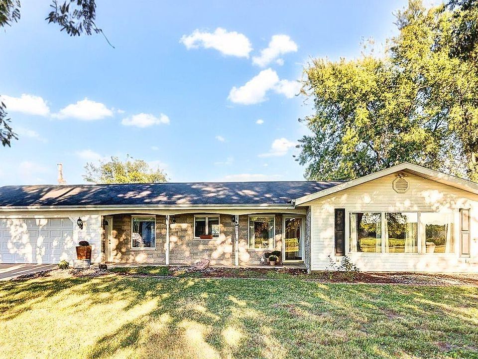 TWO ACRES! Easy Interstate Access. Nestled on a peaceful two-acre lot, this 3-bedroom home combines tranquility with convenience. The showstopping stone fireplace in the spacious living area is complemented by large windows that flood the room with natural light. The primary bedroom offers dual closets and an updated bathroom, while the other two bedrooms provide flexibility for family, guests, or a home office. A generously sized laundry room/drop zone features a mud sink and direct access to the patio. The oversized garage offers extensive storage with shelving and cabinetry, plus a utility door leading to the expansive backyard. Outside, you'll find a paver patio perfect for relaxing, along with raised garden beds bursting with blackberries and strawberries. The property’s two acres provide a serene, private escape with plenty of room to roam, all just minutes from interstate access, making it an ideal blend of nature and convenience. Don't wait, schedule your showing today.