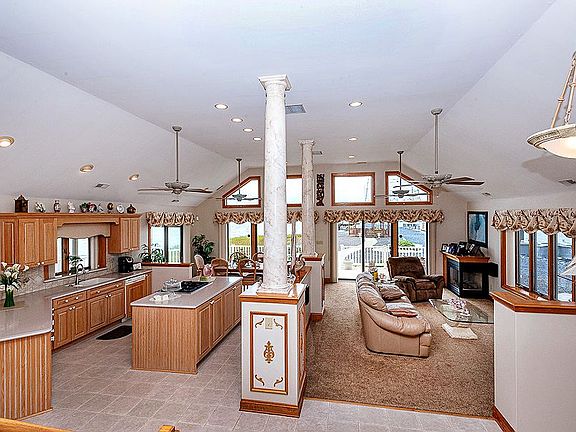 Magnificent Bayfront 4 bedroom 2.5 bath home on a secluded street. Enjoy panoramic water views from every window! Bright and airy open concept living room with cathedral ceilings, recessed lighting, large dining room and upgraded kitchen with gas range, tiled floors and backsplash and granite countertops. Sliders lead to your backyard Bayfront oasis with private gazebo perfect for enjoying your amazing sunset views every night or if its chilly enjoy the views from the enclosed sunroom with hot tub. Second floor of home boasts 3 large bedrooms including the master suite with walk in closet, and master suite with his and hers vanity and jacuzzi tub. Third floor has the 4th bedroom with closet and space for the kids to play! Other features include 2 car garage with off street parking for 6+, maintenance free vinyl siding, Trex wrap around decking, Anderson windows & dual zone heating and cooling. Sale includes an additional non-buildable 300x100 lot on the bay side.