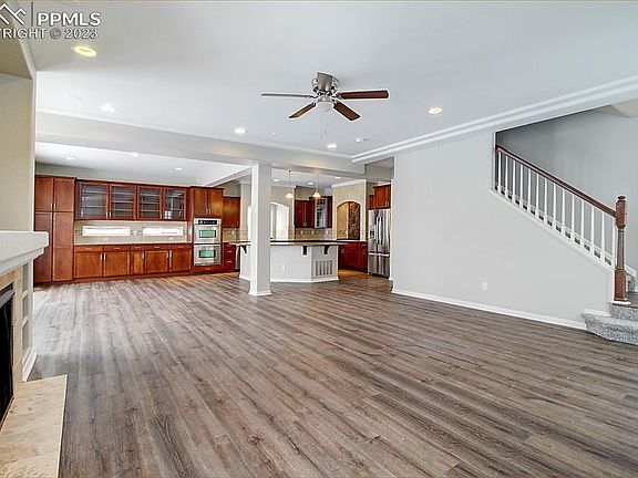 Welcome to this gorgeous 2-story, single-family home in Fountain! Your future home offers 3 Bedrooms and 2.5 Bathrooms. The main level has a bright open concept layout with a spacious Living Room and cozy fireplace, and HUGE updated eat-in Kitchen! The Kitchen features granite-slab countertops with an abundance of cabinetry extending to the dining area, and including glass-front cabinets for your favorite dishes! Stainless-steel appliances with double ovens, gas range with hood, and large center island underneath pendant lighting. Open the sliding door off the kitchen and combine your indoor-outdoor living experience in the back yard! Upstairs, you'll find 3 Bedrooms, including the Primary, which has a private 5-piece bathroom and a walk-in closet. Set up an in-home office, or media room in the bonus Loft! A partially-finished basement is ready to accommodate your needs and has egress windows for any future bedrooms! There's a 3-car garage with an epoxy finish on the floor. Great location near local trails, Jimmy Camp Disc Golf, Eagleside Elementary and more. Call now for your a tour!