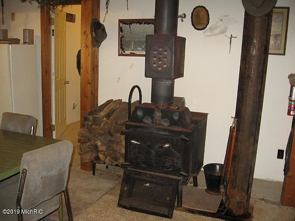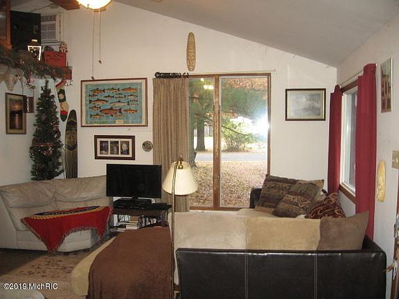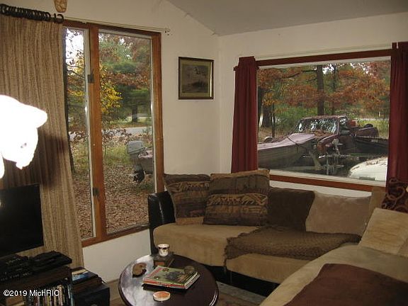 Perfect location to get away from it all and fun for everyone. This open floor plan with vaulted ceilings ranch is between N US-31 and N M-37 near thousands of acres of USA Land, multiple inland lakes, ORV, snowmobile trails and the Na-Tah-Ka. The home is heated with the wood stove or propane space heater. The length of the home has 3ft shelving for decor or storage. There are many large windows and ceiling fans throughout. The lighted pole barn is 24x32 with plywood interior walls, built-in workbenches and shelving, ceiling fans, concrete flooring is perfect for all the toys. The sale also includes range, refrigerator, wood burning system, space heater and shed with covered extension for cut wood storage. Located on two paved roads is a bonus. Call today to check this bargain out!