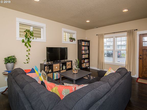 Move-in ready w/ like new quality finishes & designer details. You'll love the quartz countertops, tile backsplash, stainless appliances, wood floors, custom window shades, & wood details. Main floor has an open floor plan with kitchen island, a dining area, storage, & half bath! Two spacious bedrooms with large closets, big full bath, & lots of sunny windows. Easy care yard, + an inviting covered front porch. Energy Score 9, low taxes! [Home Energy Score = 9. HES Report at https://rpt.greenbuildingregistry.com/hes/OR10147531]
