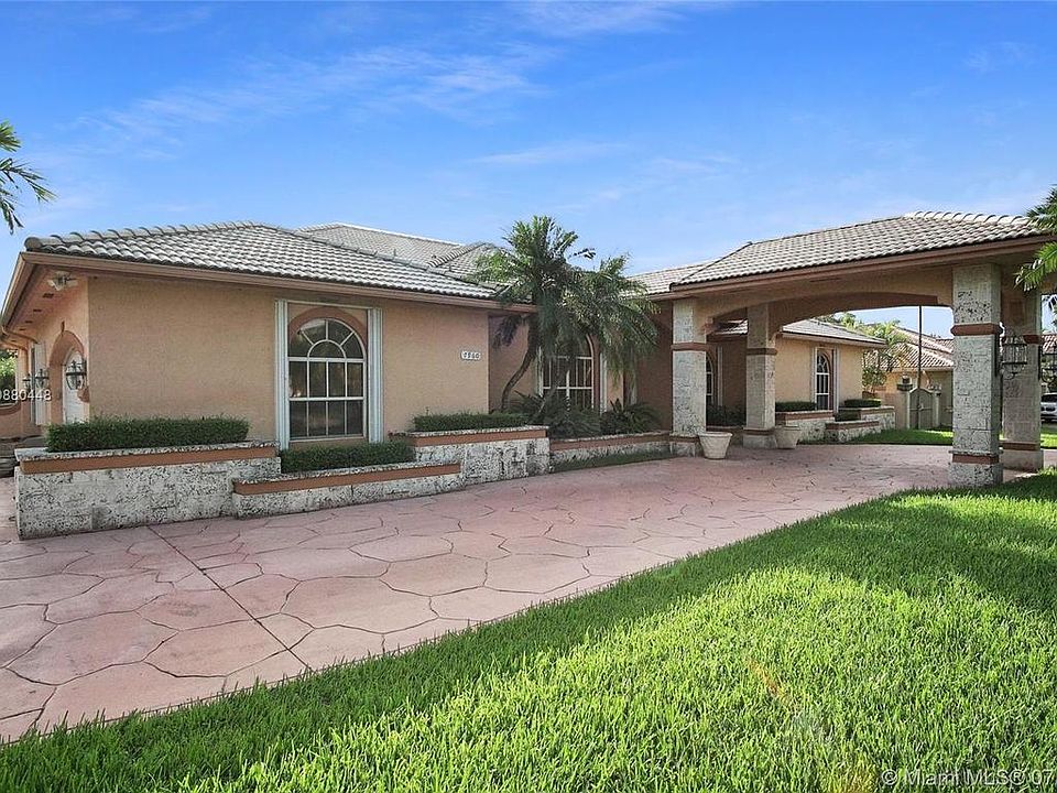 Don't miss out on this well-maintained home located in the sought after Sharon Estates subdivision. This spacious Mediterranean style home features a porte-cochere, elegant entrance, circular driveway, two-car garage. The home boasts 3,393 SF under a/c, 18,450 LOT, & consists of 4 bedrooms, 3.5 baths, grand master suite, formal living, and dining plus an ample kitchen with breakfast nook that overlooks a huge family room with views of the backyard & terrace great for entertaining. Spacious pool is equipped with a beautiful waterfall along a large fenced yard with a side area to park an RV or boat--minutes to major road and highways, shopping restaurants, and schools.