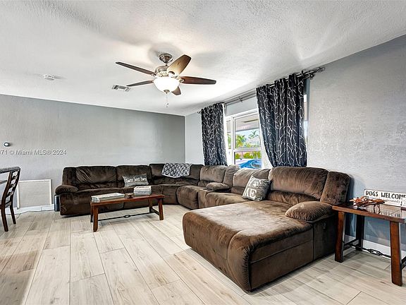 This 3/2 pool home is move-in ready! Kitchen and bathrooms have been remodeled. Stainless steel appliances, Refrigerator with Ice maker, Oven, Dishwasher, & Microwave. Impact windows and doors. Tile that looks like wood throughout living space, carpet in bedrooms. Open floor concept. Covered patio to relax by the pool, travertine pavers. 8 x10 Shed in back yard. Master bath has shower with walk in closet. Guest bathroom has shower/tub combination. 6 ceiling fans throughout house. Central A/C-Heat. Washer/Dryer, one car garage. Circular drive way with extra parking. Close to Hard Rock Hotel & Casino, Dolphin Stadium. Centrally located with access to Florida Turnpike, I-595, & I-95. No HOA’s ON SUPRA LOCKBOX