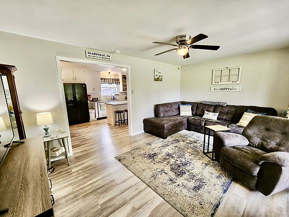 Prof Photos Coming Soon! Beautifully remodeled, maintenance free Brick w/vinyl trim, 3BR 2BA move-in ready ranch home on 2 private acres! Also features Flex room w/closet, Den w/wood-burning fireplace, Formal Living Room, Open Concept Kitchen/Dining Room. Owners Suite features also has exterior door to fenced area. Large laundry room, extended covered front porch and covered patio. Detached 6-car carport/pole barn (24' x 48' with 12' x 48' extension), Detached 40x17 garage/barn w/FP (with 40x9 implement shed attached). Bring the 4-wheelers, boats, campers - lake and camping within 15 minutes. Mature trees, level lot, surrounded by farmland. Zoned Award-Winning Gladeville Schools!