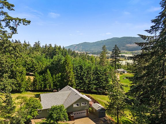 Now offered at $735,000! This updated Mid Century Modern home is for the outdoor lover! Enjoy the beauty and comfort of Pacific Northwest living just minutes from town. This home offers privacy and ample space for all of your outdoor needs. You can camp, hike, or create a beautiful oasis in every corner of this beautiful property. Or, just lay on a hammock under the majestic forest of trees. Enjoy fruits from mature cherry and apple trees, and a seasonal pond where you can find deer and other wildlife year-round. With breathtaking views of the mountains and valley, this home offers the best of the outdoors, but that's not all! Plenty of living space for a large family, or multi-generational as there is already a separate entrance with full living spaces on the ground floor, it's just missing a kitchenette. Including the finished basement, this home offers a little over 3,000 square feet of living space, complete with 5 bedrooms, 3 bathrooms, and a bonus living area and office/flex room. There is ample separation of space, as well as two primary suites, one located on the ground floor, with a large sliding door that has access to the expansive deck. The kitchen has been recently updated, featuring granite countertops, stainless steel appliances, a double oven and glass cooktop. Flooring has just been updated to luxury vinyl plank throughout. Outside, you'll enjoy a large yard with an obstacle course, zip line. In addition to the attached 2 car garage, there is a detached large shop with 220 power, features a recording studio, an office, and storage above. Down the driveway, RV parking with its own meter and full hookups. All 6.8 acres are fully fenced, with about 3 acres of expansive yard. This home is truly a hidden gem, that you must see to appreciate all it has to offer. Seller is a licensed real estate broker.