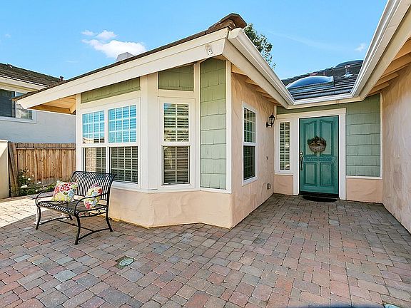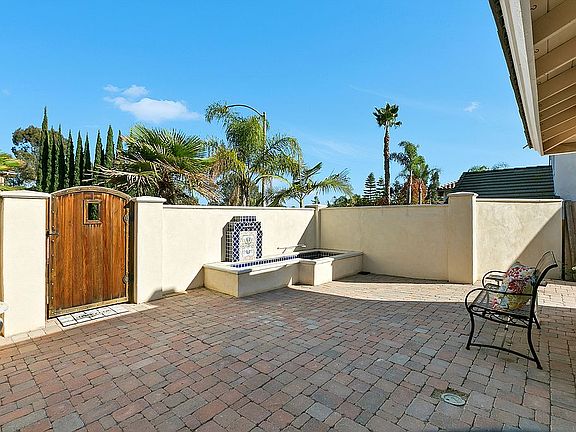 Beautifully updated single level home nestled behind a private courtyard. Hardwood floors, fireplace, vaulted ceilings, ceiling fans, custom Kitchen features granite counters, built in appliances, smooth cooktop, double ovens. Family room is highlighted by vaulted ceiling and french doors that open to a covered entertainer's patio and yard. Milgard windows throughout, newly installed air conditioning, gas furnace and ductwork. The master bedroom has a walk in closet and a French doors to the back yard. The remodeled en-suite Master Bath has quartz topped vanity and custom lighting and fixtures, rainfall shower, hand held shower and shower bench with glass tiles and frameless glass doors. Outside the setting is perfect for entertaining. Ideal Location - easy access to shopping, the Coaster Station, 5 FWY, great schools, and world-class beaches. Schools are EUSD and SDUHSD. Low HOA. No Mello-roos. Welcome Home!