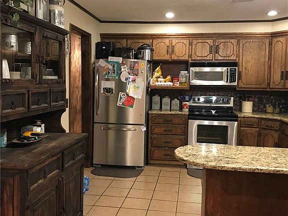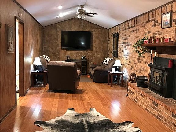 Country home located on 10 acres with a large pond! This great home has 3 bedrooms, 2 bathrooms, a large living room and also a den area. The home features walk in closets and an open kitchen/dining area. Large 40 X 60 insulated shop with concrete floors, electric and a bathroom. 30 x 50 barn with concrete floor and electric. There is a water well located on the property and two storm shelters. There is also RV hookups.