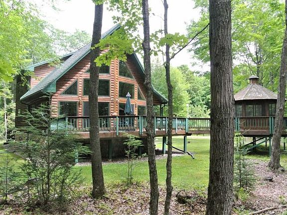 This custom built 4 BD/3Ba home is very privately situated on 5 wooded acres in Three Lakes and features LOADS of extras and custom touches throughout! The wrap around deck with fully appointed Gazebo is a great place to relax or entertain. Abundant storage options include a double garage with heated third bay/workshop,a potting shed,tool shed,and tent garage. There is a custom metal roof with warranty,backup generator and 1500 gals of propane capacity. Inside this lovely home, you will find hardwood flooring, ceramic tile and berber carpeting, 6 panel doors, tons of closets, a floor to ceiling stone fireplace with pellet burning insert that is thermostatically controlled, huge pantry and spacious main floor utility room. Lower level has 9' ceilings, a rec rm, 2 Bedrooms, 3rd bath and two large utility storage areas. There is just so much more! This perfectly appointed home appears to have just about everything and is truly a must see!!