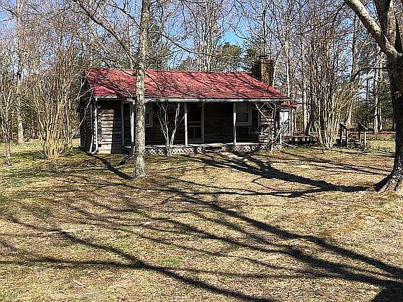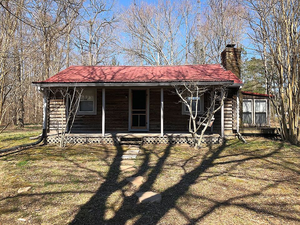 This cozy log home is situated on a beautiful 5.51 Acres, m/l, with pond, and property also features a detached metal garage, additional wooden barn, 2 storage sheds, large concrete bunker storm shelter. and circle driveway. This property would be perfect for a summer get-a-way or an excellent permanent home with a convenient location. Log house features one bedroom plus loft, full bathroom, utility area, nice stone fireplace with insert, covered front porch, & large 43 ft. screened in back porch. The metal garage measures 24ft x 24ft and has concrete floor & overhead door. Property has plenty of space and is perfect for animals offering enough acreage for a mini-farm. Property also has nice shade trees and sits back from the roadway a good distance. Call today to view this affordable home!! Won't last long!