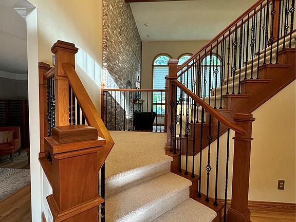 The family room 20x18 with two-story vaulted ceiling and accent full brick wall and gas fireplace is very impressive and creates a welcoming atmosphere. Also on main floor next to main entrance is a secluded 14x12 private office. Living room with its second gas fireplace and private deck and retractable awning is great addition to the main floor floorplan.