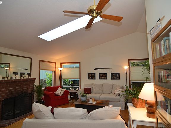You''ll be amazed how large this home feels for its size!The vaulted ceilings & skylight & gleaming real oak hardwd flrs make this home light,open & spacious! Kitch:gas range, eat-bar, fridge, & adjoining vaulted FR or DR. LR has wood burning frplc & adjoining DR being used as an office. New triple & double vinyl windows. 95% eff gas furnace new in 2014. New roof 2013, H20 in 2012.Huge deck w/covering. Gorgeous private bkyd! No mowing!