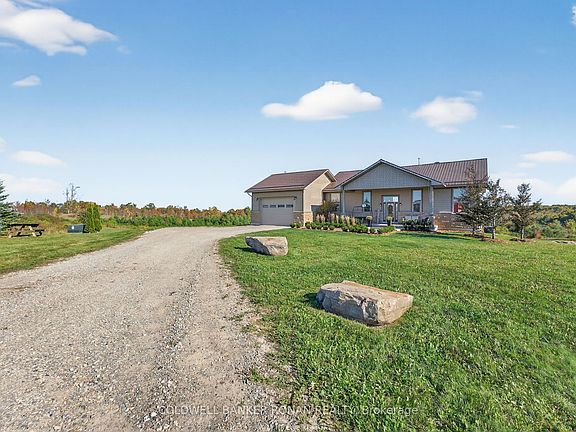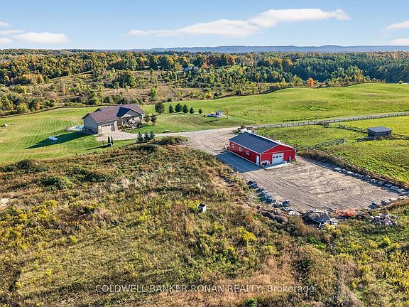 Welcome to your very own spectacular retreat in the picturesque rolling hills of Mulmur set on 26 acres. This 3 plus 2 bedroom stunner bungalow has so many upgraded & fabulously unique features giving you a modern graceful farmhouse feel, which includes soaring 12 foot ceilings, open concept kitchen, large bedrooms, gorgeous primary bedroom with motorized blinds, a true spa like bathroom en-suite, beautiful brick wall features, a walk-out lower level, complete with a cozy family room, 2 more bedrooms & a newer bathroom with a walk-in shower. Outside, you will find a lovely professionally landscaped backyard oasis with an inground pool that has a new liner, filter, pool heater & pool cover that screws into the deck, all in 2022. This property is perfect for your hobby farm boasting a modern barn with 3 paddocks with shelter, a horse wash bay with infrared heat, a heated & insulated room, a shower & a professional motocross track. More features include a metal roof, upgraded roof vents, motorized blinds in living room, attached oversized insulated garage with wood fireplace, stairs to basement & plywood walls & ceilings. Perfectly located within 12 minutes to Mansfield Ski Hills, 12 min to the amenities of Shelburne, 19 min to Alliston hospital which is undergoing a huge expansion, 4 min to the famous Mrs Mitchells fine dining restaurant & 52 min to Brampton. Bonus. Only a few min away is Murphys Pinnacle Lookout which is part of the Bruce Trail network and located within the Boyne Valley Provincial Park.