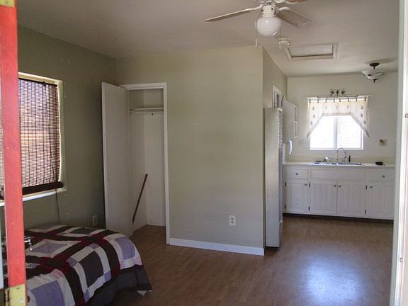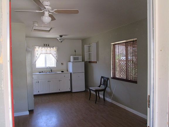 For the dreamer in all of us. Tiny House living. There is the basics, kitchen with a space for a stove and a refrigerator, a good sized 3/4 bath. Front covered deck and a covered patio work space????? A nice storage shed with loft storage added. Hose bibs throughout the property for the garden. You can add the Tiny House features that you always dream of. OR! Here is the Family Weekend retreat you have always wanted. Double gates let you park the RV, use the little Cabin as the "Bunkhouse/Cook shack." etc. Located on a large lot with paved road, cute trellis and native plants landscape this cutie. Sit under the large shade tree or lay out and gaze at the endless stars.