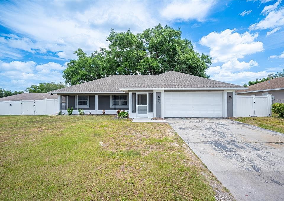 Exquisitely Renovated Home! This stunning 3-bedroom residence boasts an Office, Florida Room, Flex Space, Family Room, and 2-car Garage. Enjoy the luxury of virtually everything being brand new, including the Roof, A/C, Interior/Exterior Paint, Flooring, Cabinetry, Windows, Appliances, Granite, Fixtures, and more! Step into a world of Open Concept Living with a beautifully designed Kitchen featuring a Huge Island Eating Area that flows seamlessly into a Dining Room and Living/Flex Space. The opposite side of the Kitchen reveals a spacious Family Room with Vaulted Ceilings and an enclosed Florida Room adorned with lovely windows. The Home Office is a haven of productivity, offering serene views of the tree-lined, fully fenced private backyard. The Master Bedroom is a retreat in itself, showcasing an opulent Spa-Inspired En Suite with a Smart Mirror, Gorgeous Granite Double Sinks, and an Extra-Large Glass-Enclosed Shower with a Rainfall Shower Head. Storage is plentiful with Two Closets. The Secondary Bedrooms are generously sized and share a Beautiful Full Bathroom with Tub. This gem is nestled in a charming neighborhood that's conveniently located near all amenities. No HOA, No CDD, and situated on a spacious 1/4 Acre Lot. Don't miss out on this exceptional opportunity!