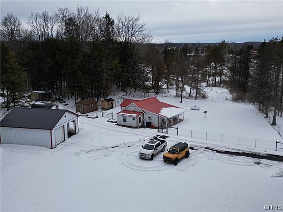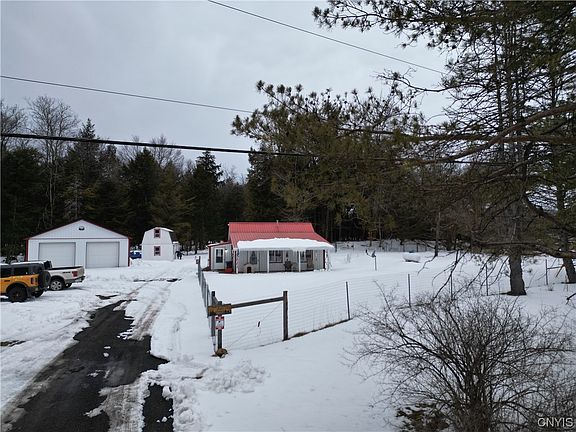 Rarely, does a property come to market that offers a multitude of diverse uses. 7963 State route 12, in Trenton, is one such property. Presently used as a residential property on just under 12 acres...but in an area of commercial businesses which opens up the scope of potential best uses. The property has been much improved upon since the seller purchased in 2019. Inside the home...newer heating system, on demand hot water, updated electric and plumbing, new addition boasting bathroom, laundry, and storage, and new septic system. Floor plan is fairly open with large eat in kitchen, main living room, one-bedroom, heated sun porch, and new bathroom. Use the home for convenient one level living, or get your commercial zoning and use the structure as the main office and build your empire. Outside will not disappoint! Plenty of land allows a blank palette for your ideas! Fenced in front yard for your furry friends. 2-year-old detached, 2 stall garage with 10-foot garage doors allows for a multitude of storage uses and will actually fit your pickup truck. 2 separate storage buildings with one being a 2 story. Spectrum cable available.
