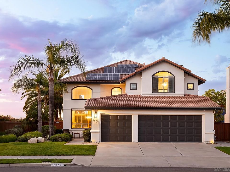 Nestled on a serene cul-de-sac in with open space behind, In Park Village this recently updated home offers contemporary comforts ideal for relaxed San Diego living. Upon entering, you'll be greeted by soaring ceilings and abundant natural light, setting a welcoming tone for the formal living and dining areas. This inviting home showcases fresh luxury vinyl plank flooring, high-quality Wolf Appliances, a Sub-Zero refrigerator, granite countertops, chic shaker-style cabinets, and a generously sized walk-in pantry. Adjacent to the living room, a tastefully refurbished fireplace and built-in cabinetry add character and functionality. The ground floor also has a convenient bedroom and a renovated bathroom, ensuring versatile living spaces. The primary bedroom on the second floor offers awe-inspiring canyon views, while its renovated ensuite bathroom features a freestanding tub, a new vanity, and a beautifully tiled shower. Completing the second floor, you'll find a remodeled office nook along with two more spacious bedrooms and a remodeled bathroom showcasing designer finishes. Step outdoors through an impressive 3-panel sliding door to discover a private backyard oasis, complete with a luxurious pool and spa, an entertainer's dream. The property also features newly painted exterior, 3-car garage with epoxy flooring and Paid-For Solar, guaranteeing energy efficiency and a water softener for added convenience. With the added perks of a low HOA fee and no Mello-Roos taxes, this home encompasses all the essentials for modern and comfortable living in a coveted neighborhood.