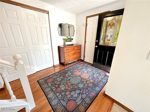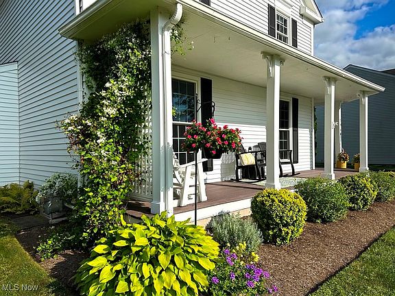 You'll be delighted to see this beautiful, very well maintained Colonial home in Gatewood Meadows. It's eye-catching curb appeal is abundant starting with the pretty wrap-around front porch & landscaping, and as you walk into the Foyer, you're drawn into the fresh, clean and crisp palate of a home in showcase condition. This only 2 owner home has many updates including a newer roof, flooring, updated Kitchen & Baths, Windows, Deck, Appliances and more. The Living/Dining Rooms are open to each other offering an open floor plan feel, with neutral carpeting & crown molding. Gorgeous newer hardwood floors grace the Foyer, Eat-in Kitchen, & Family Rooms. Updated, big Eat-in Kitchen w/granite counters, newer appliances & pantry. Masonry fireplace in the Family Room, with a slider that walks out onto the nice Deck and backyard. Upstairs, the Master Bedroom w/remodeled Master Bath features a walk-in closet. 2nd Bedroom has double closets, 2 more nice BR's, and all carpeting in excellent condition. Unfinished spacious basement has tons of built-in shelving & utility sink. Oversized, deep attached 2 car garage w/extra storage. This spotless home offers a great location & it's move-in ready.