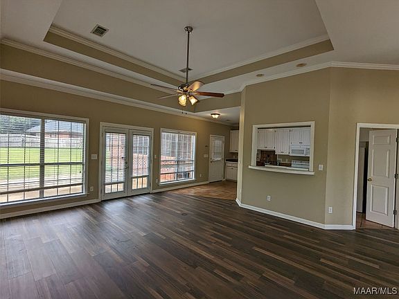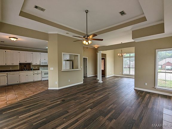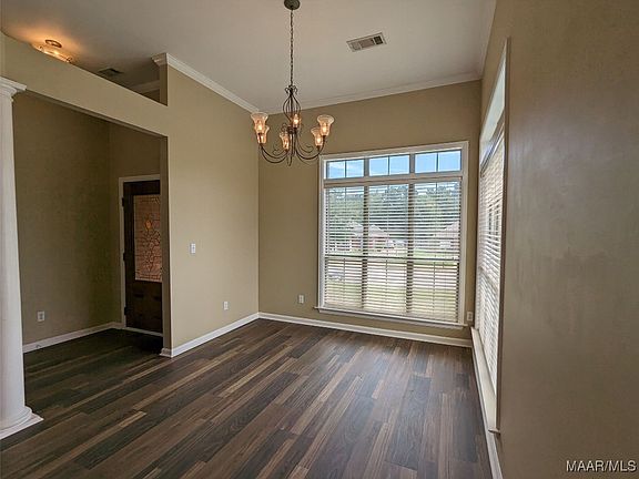 You will love this 3 bed, 2 bath home in east Montgomery. Close to Brewbaker Magnet School and not too far from all things Eastchase this home offers so much to a tenant. The 10' to 12' ceilings in formal dining room and great room and a wall of windows across the back make it feel even larger than it actually is. The great room has a raised fireplace with gas logs and mantle. The formal dining room has elegant columns. The eat-in-kitchen has a pass thru bar to the great room and an abundance of cabinets. The spacious primary suite has a large walk in closet and master bath features a garden tub, double vanities and separate shower. The double carport has attached storage and a brick wall that separates it from a huge patio and large private backyard. The fireplace is decorative only unless tenant verifies it is safe to use.
