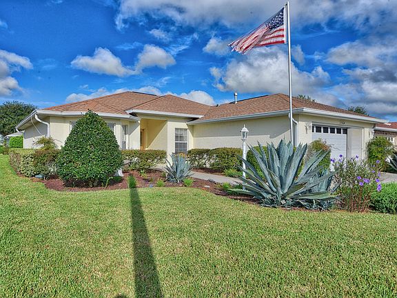 This popular Verbena model is a 3 bedroom 2 bath split plan home. It has an open concept w/ eat in kitchen and eat at kitchen bar. The large Master Bedroom has his and her closets, then you enter into the luxury Master Bath which boasts dual sinks, separate shower & jetted tub. Enjoy the private back yard from your enclosed Lanai perfect for every season. The 2 car garage is screened for ventilation. Located in Ocala's premier 55+ community with access to 2 shopping centers & 2 community centers, that include pools, fitness centers and loads of activities. Come experience resort style living at it's finest!