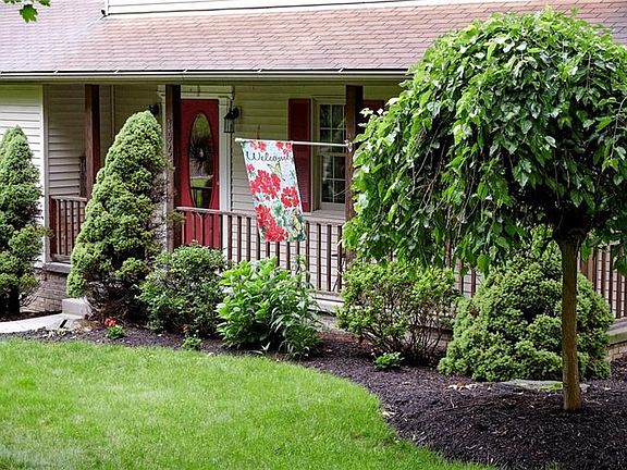 Situated on 2.35 acres of lush foliage & rolling landscaping is this delightful home w/stylish updates! Greet guests on the quaint porch leading to the spacious entryway. Fresh paint & modern floors grace the main level. Expansive DR w/bright windows & neutral tones. LR is a generously sized versatile room tucked off the KIT. Large KIT feat endless counter tops, SS, ample two-toned cabinetry, EIK area, access to the laundry & rear deck. Sun-filled FR is large & feat a wood burning FP w/zero clearance metal flue, newer carpet & fresh, neutral decor. Ascend to the second floor & retreat to the sun-drenched master BR w/room for larger furniture, ample storage & private BA. Master BA feat a shower, modern flooring, custom vanity & bright window. Two guest BR provide abundant natural light, sufficient storage, newer carpeting & share a stylish hall BA. LL is versatile & ready for your design. Enjoy the private deck overlooking the serene landscaping.