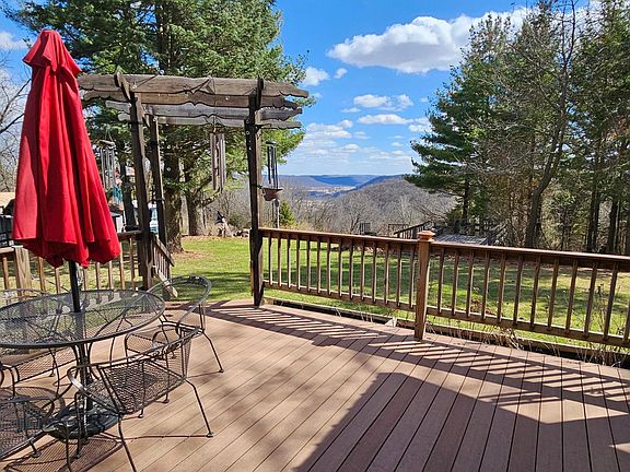 Attention Horse enthusiasts! Follow the ridgetop road full of towering white pines to the end which leads to the prime 5 acre south facing property overlooking the valley for miles. The 4-bedroom 3 bath 2980 square foot home has spectacular views out of the large, vaulted south facing windows. The first-floor master suit walks out to the south facing main floor deck which is partially covered and partially open. This combination offers full sun and shade while you listen to the wind flow through the towering white pines. The is an attached 2 car garage, 2 story garden shed, and 26 x 32 outbuilding which has 3 horse stalls. There are approximately 4 acres of fenced pasture with large walnut trees. There are multiple fruit trees including apple, pear, plum, and cherry. The horse trail access which runs for over 20 miles through the Wet bark trail and Outback Ranch is less than 100 yards from the property line. Great location just 20 miles from Lacrosse and Winona.