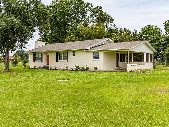 TUCKED AWAY IN PASTORAL SETTING... Horses welcomed... 2.44 ACRES of fenced and crossed fenced property with barn. Welcome guest with warm, welcoming family room, dominated by brick wall to wall fireplace with raised hearth that says, "RELAX". Large picture window overlooks front yard. Laminate floors throughout home, perfect for quick clean up. FARMHOUSE-style kitchen, includes all appliances and deep double door pantry. Wash dishes overlooking through garden window, perfect for growing your favorite herbs! Separate COSY DINING ROOM will host intimate meals for friends and family, overlooking pasture through french doors to lanai, plenty of room for china cabinet. Split bedroom plan with two baths. Don't sweat it, stay inside with separate laundry room that has additional cabinets for storage. Listen to the quiet, large outside screened patio area, perfect place to end a day OR host entertain a large crowd for family meals! COUNTRY ROADS wind around to home tucked back off the road and hidden away for privacy. Raise animals with separate feedlots. Newly installed barn with concrete floor. Separate 10' x 30' concrete building is perfect for storing lawn equipment. USDA ELIGIBLE! NO DOWN PAYMENT! Call now for details!