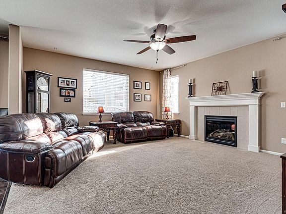 Great value! Hurry! 3 car garage! Slab granite counters! Open floor plan from kitchen to Dining to big Family room. Cozy gas fireplace in the Family room. Patio door out to back yard patio and grass area that is fenced. All kitchen appliances stay! Gleaming wood floors in main floor hallway. Big open loft area at the top of the stairs. All the bedrooms, family room and Living room have ceiling fans! Large open basement with rough-in plumbing for a bathroom is ready for your finishes.