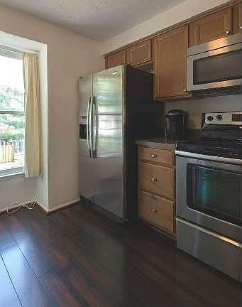 Lovely end-unit townhome is truly move-in ready. Updated kitchen w/stainless appliances, solid surface counters, upgraded cabinetry & flooring. Upper level w/3 bedrooms & updated bath. Lower level offers large family room & laminate floor. Exterior features: fully updated & private deck & fenced yard. Neutrally decorated thruout, newer HVAC system & water heater. Square foot. believed to be 1320.