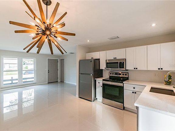 Welcome to this COMPLETLY updated beautiful home. Upon approaching the home you will notice all the really nice landscaping that was done. Once you enter the home you will notice all the beautiful upgrades. ALL NEW large format porcelain tile throughout, ALL new wood kitchen cabinets with QUARTZ countertops, NEW granite composite kitchen sink, NEW Samsung appliances, HURRICANE/high impact windows throughout, A/C is NEW. ALL new baseboards throughout, popcorn ceiling removed, NEW ceiling fans, NEW garage door with opener, NEW bath vanity with quartz top, NEW soaking tub. Notice all the NEW interior and exterior doors with black hardware and recessed lighting as well. Head out back to your very large screened enclosed porch with outdoor tile. The list goes on and on, please ask and I will be more than happy to provide you a list of everything....schedule a showing today!