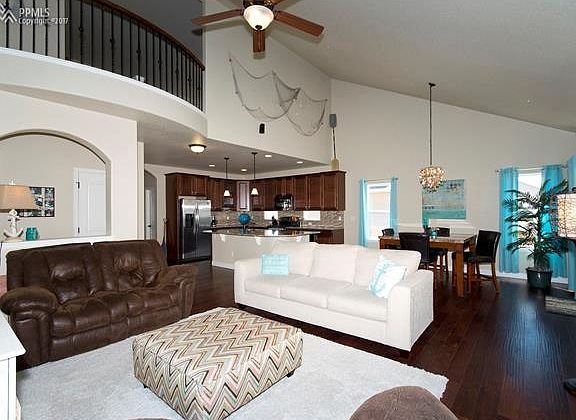 This Home is Available for the First Time*Hurry*From the Moment You Step Into the Home from the Covered Front Porch, You Will See all the Luxury Amenities offered in this Open Floor Plan Design*Extensive Tile and Wide Plank Distressed Hardwood Flooring, Wrought Iron Railing, 9 Ft+ Ceilings, Oil Rubbed Bronze Hardware*The Gourmet Kitchen is the Hub of the Home Featuring Full Slab Granite, Pendant Lighting Highlights the Chef's Island, 42 Inch Cabinetry, Glass Subway Tile Backsplash, Walk In Pantry, SS Appliances to Include 5 Burner Gas Range/Oven,Refrigerator & Beverage Chiller, Microwave & DW*Kitchen is Wide Open to the Great Room Wired for Surround Sound, Rock Accented Gas Log Fireplace & Casual Dining Area*Spacious Main Level Owners Retreat w/Trey Ceiling, Walk In Closet, Luxury 5 Piece Bath, Double Vanity w/Granite CounterTop & Designer Sinks*Secondary Main Level Bedroom is a step away from a Full Bath*Main Level Laundry*The Upper Level is Ideal for Guests, Parents, or Kids Wanting their Own Space with a Secondary Living Space, Spacious Bedroom & Adjoining Full Bath*Unfinished Basement w/ Rough In for a Bath*Central Air Conditioning*Ceiling Fans*Enjoy Two Out Door Living Spaces*Covered Front Porch w/Meadow Views*Private, Fenced Back Yard w/ Concrete Patio w/ Pergola to Provide Protection from the Sun*Dog Run*Sprinkler System*Close to Community Park/Playground*Easy Access to Powers, I25 or Academy Blvd*Close to Shopping and All Bases*With Prices Rising on New Construction, Why Build when You can Own this Immaculate Home Now?*