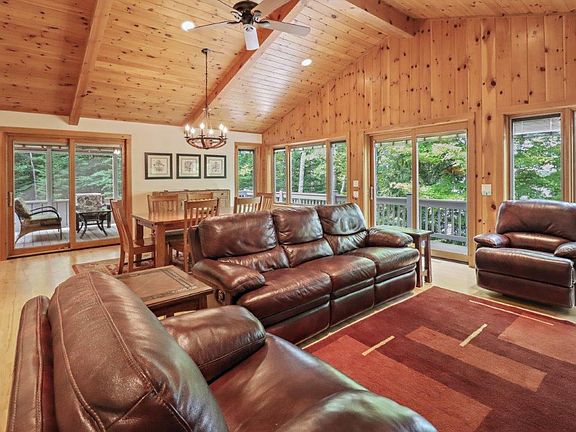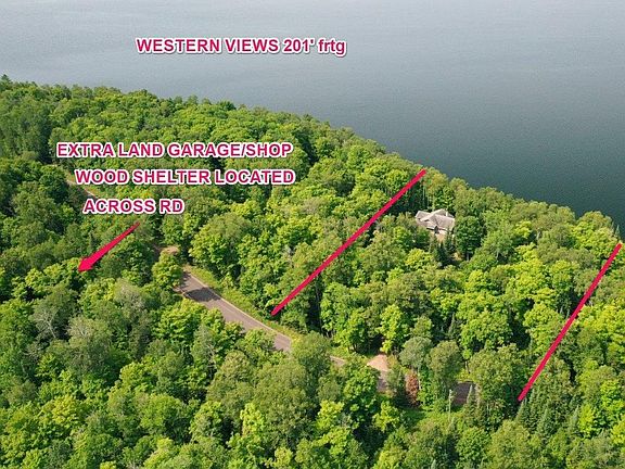 Beautiful custom built "Benson" home on Presque Isle chain! 201' Western facing frtg and almost 4 -1/2 tot acres. 4 bed, 3 ba home has a terrific open floor plan with nothing but high quality throughout from the maple hardwoods floors to T & G walls, ceiling and tiled kit/baths. Kitchen has sub zero and Viking appliances. Vaulted /beamed ceilings give this home a wonderful feel and the views are spectacular. Att. 2 car ins/heated gar. with access to basement along with the interior entrance down to this lower exposed level. This area boasts of the bar/rec rm , bath and two more large bedrooms. Across the road you will find another custom built 30 x 54 2-story garage with ins. shop, upper bunk rm. and storage. In here you will find a large area to park all your lake items, sleds, and more. Huge wood shelter hugs the South lot line by the garage and will hold enough wood for many years. Tough to recreate this whole package in today's world of materials for this price.