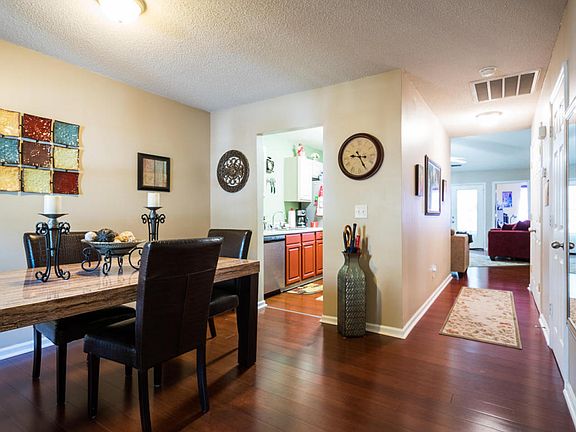 This is a very nice 1 story end unit townhome in the gated community of The Park at Rivers Edge. Beautiful wood floors throughout new appliances and fresh paint. Vaulted ceilings in living area and master. Master also has walk-in closet dual vanity & separate garden tub/shower. This townhome has a cozy front porch as well as a relaxing back patio that overlooks the common wooded ground. Amenities include pool clubhouse tennis court park play park gated community with gate guard.~$700 credit available toward buyer's closing costs and pre-paids with acceptable offer and use of preferred lender.