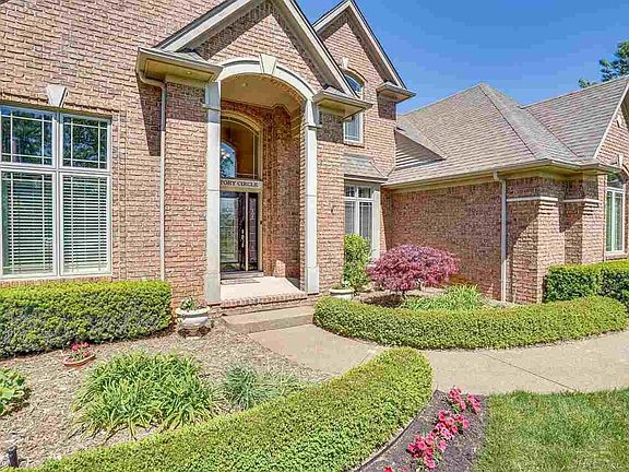 Custom Colonial on 1.6 Acres in a Bruce Township gated community! Premium brick elevation. Steel entry door w/leaded glass window 2 matching sidelights & arch top transom window. Beautiful hardwood floors throughout foyer, living, dining, den, & great rooms. Spacious kitchen w/large center island, plenty of cabs, pantry, granite tops, SS Thermador dual oven, SS Wolf cooktop, SS DW & refrigerator. Door off dining nook to beautiful exposed aggregate patio and heated inground pool. Great room w/double trayed ceiling & fan, gas fireplace w/mantel & granite face & hearth. Dual staircase to the second floor. Master suite w/tray ceiling & fan, private balcony w/stairs to pool, gas fireplace, & WIC. Master basth w/corner jetted tub, dual sink vanity & stall shower. ^ car heated garage & more. Too much to list.