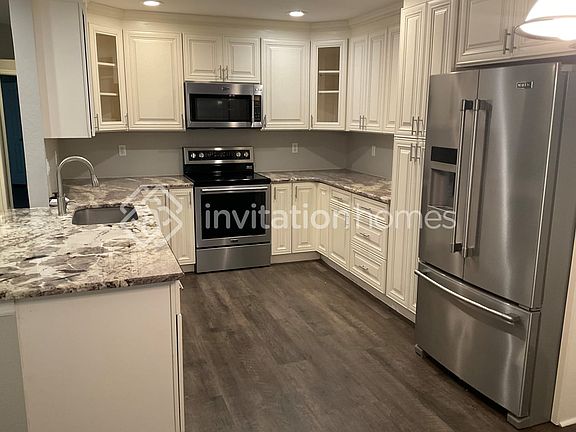 Please note, the total monthly rent is estimated to be $2343.90. This amount includes a base rent of $2199.00 and required leasing fees including Air filter delivery $9.95, Internet package $85, Smart Home with video doorbell $40, and Utility management $9.95. This is the house you've been looking for. It's welcoming, stylish and comfortable. A breathtaking entryway and a functional design all come together to make a comfortable interior ready for you to transform it into your ideal home. Luxury vinyl plank flooring runs throughout the home's living area. The open living area gives you plenty of space for a dining room and entertainment area. The comfortable kitchen space is complemented with granite countertops, premium cabinets, and stainless-steel appliances. Meal times and household gatherings will be even sweeter in this kitchen space you can make your own. Turn this fenced backyard into your ideal outdoor space. Set outdoor meals on the patio, make room for outdoor plants and decorate as you see fit to make the yard a space that reflects your sense of style. Apply online now! This home is located within the service area where our Internet Package is required, it will be equipped with high-speed internet and media streaming capabilities at just $85 per month, a great value. This monthly fee will be required in your lease. At Invitation Homes, we offer pet-friendly, yard-having homes for lease with Smart Home technology in awesome neighborhoods across the country. Live in a great house without the headache and long-term commitment of owning. Discover your dream home with Invitation Homes. Our Lease Easy bundle which includes Smart Home, Air Filter Delivery, and Utilities Management is a key part of your worry-free leasing lifestyle. These services are required by your lease at an additional monthly cost. Monthly fees for pets and pools may also apply. Home Features and Amenities: Air Conditioning, Fenced Yard, Garage, Granite Countertops, Long Lease Terms, Luxury Vinyl Plank, Open Floorplan, Patio, Pet Friendly, Primary Bedroom on Main, Recessed Lighting, Single Story House, Smart Home, Stainless Steel Appliances, Tile, Walk in Closet, W/D Hookups, and professionally managed by Invitation Homes. Invitation Homes is an equal housing lessor under the FHA. Applicable local, state and federal laws may apply. Additional terms and conditions apply. This listing is not an offer to rent. You must submit additional information including an application to rent and an application fee. All leasing information is believed to be accurate, but changes may have occurred since photographs were taken and square footage is estimated. See InvitationHomes website for more information. Beware of scams: Employees of Invitation Homes will never ask you for your username and password. Invitation Homes does not advertise on Craigslist, Social Serve, etc. We own our homes; there are no private owners. All funds to lease with Invitation Homes are paid directly through our website, never through wire transfer or payment app like Zelle, Pay Pal, or Cash App. For more info, please submit an inquiry for this home. Applications are subject to our qualification requirements. Additional terms and conditions apply. CONSENT TO CALLS & TEXT MESSAGING: By entering your contact information, you expressly consent to receive emails, calls, and text messages from Invitation Homes including by autodialer, prerecorded or artificial voice and including marketing communications. Msg & Data rates may apply. You also agree to our Terms of Use and our Privacy Policy.