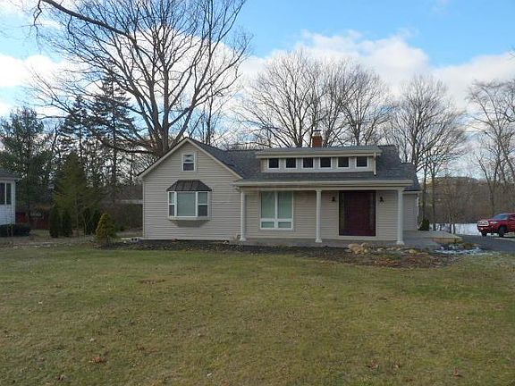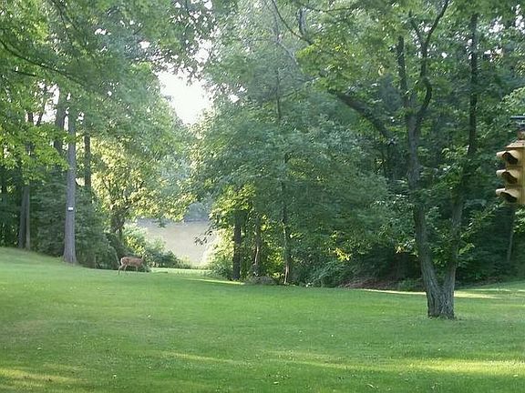 Serene setting on this 4 acre lot! Picturesque views of wildlife, woods, stream with waterfall! Completely remodeled house has vaulted ceilings, plenty of natural light, and ceiling fans throughout. Newer carpet and ceramic tile floors. 2 of the 3 bedrooms have a dedicated full bath and a half bath is conveniently located off the living room. Fully remodeled kitchen in 2015! Beautiful granite counter tops, stainless steel appliances, & french doors off the eat-in area. Laundry room located just off the kitchen. Living room features a wood-burning fireplace that could easily be converted back to gas. Brand new deck with an outdoor fireplace that overlooks this expansive property. New roof, 90% efficient HVAC. 6 car garage! Convenient location that feels like you're in the country!