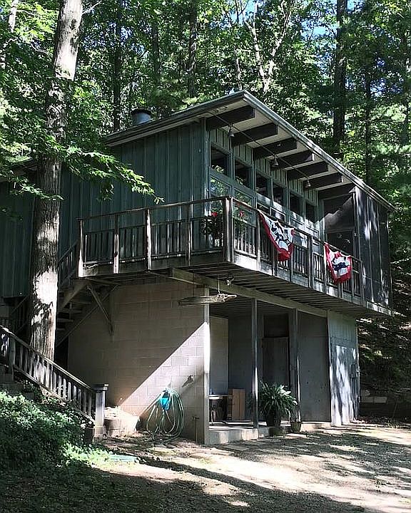 Bauhaus-style, 2 bedroom 2 bath Lake Michigan cottage with great view of an expansive creek/meadow and very close proximity to tennis, nature trails, soda bar and Brandywine beach. Interior Features: Updated appliances, wonderful screened porch with floor to ceiling views, wood-burning fireplace and high beamed ceilings. Exterior Features: Bauhaus style with elevated deck, ample storage and plenty of privacy with 3 lots and quiet road. The cottage is located just 250 yards from Brandywine beach on Lake Michigan. Palisades Park Country Club is a gated community with approximately 200 homes spread out in some 600 acres in the wooded dunes and bluffs along the Lake Michigan shoreline in southwest Michigan. The sale price includes furniture and appliances.