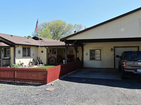 This well-cared-for property offers a range of desirable features that enhance comfort and convenience. Single level two-bedroom, two-bath home with large shop and additional open space around the property provide for great livability and usability. Inside the home, you will find updated interior paint, floor coverings, remodeled bathrooms, and new kitchen appliances, and a new heat pump unit. The shop features concrete floors, lots of built-in storage, office space, covered outdoor parking, and a graveled RV 50-amp power hook-up. The property is fully fenced with wire panels set on wood posts. Extra parking space adds convenience for residents and guests. Completing the package is a deck off the back of the home, perfect for outdoor entertainment and relaxation. Overall, this home, shop, and property offer a blend of practicality and comfort, making for a wonderful place to live.