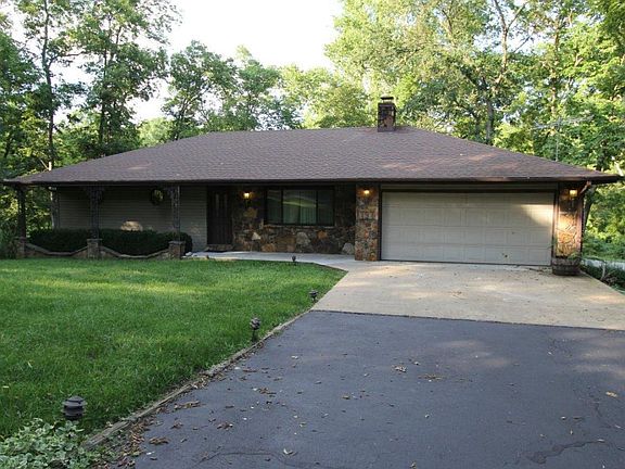 First time on the market. Solid, quality built home on large landscaped corner lot at the north edge of Branson. Outside city limits but on central sewer and public water. Lot backs up to a small stream that runs a good portion of the year. Numerous landscape beds and a large garden space that the deer are quite fond of. Home features a large country style kitchen with breakfast area, formal living and dining areas, huge master suite, guest half bath, all seasons room, numerous storage areas and 2 car garage on the main level. The finished walkout lower level has large family room with ducted fireplace, 2 bedrooms, full bath, laundry area, third car garage, large workshop and covered deck overlooking back yard, creek and children's play area. Agent related to seller.