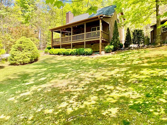 Welcome to paradise in Young Harris. Beautiful, well maintained cabin situated on 2.07 acres of stunning landscaped grounds. the cabin features the primary bedroom and full bath on the main floor with an additional bedroom and full bath upstairs in the loft. Enjoy the open living area and kitchen with vaulted tongue and groove ceilings and masonry, gas log fireplace. the covered front porch is ideal for morning coffee or relaxing in the evening surrounded by the sounds of nature. The property has a large outbuilding for storage or tools as well as a greenhouse for your gardening endeavors. The backyard has a waterfall feature that cascades over rocks and creates a smoothing sound that is ideal for relaxation. Property is being sold fully furnished and turn key. Eligible for STR.
