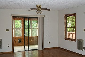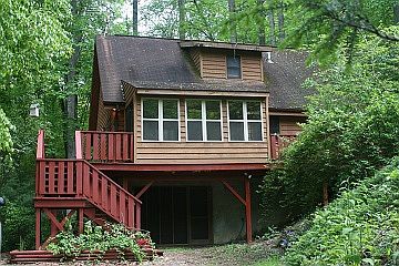 Scenic 3 level mountain home, 3 bedrooms with carpet, hardwoods in living room with stone fireplace, dining, kitchen and hall, ceramic tile floors in sun room and 2 baths, Stove, DW, disposal, fridge, carpeted activity room with cabinets and storage, garage/workshop area, 2 driveways, 3 decks with views,1.2 wooded acres, paved road, 10 minutes to Burnsville , $100.00 off 1st month rent move in allowance