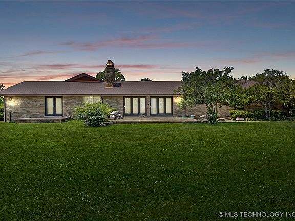 Enjoy the Beautiful Hilltop views of Downtown Tulsa from your back patio! Watch the deer in the yard every morning. This Single Story One Owner Mid-Century Gem is just waiting for your updates! Main home has 3 bedrooms, 2.5 baths, 2 living areas, attached 2 car garage and basement. Large landscaped yard. Newer windows & roof. Huge 40 x 80 shop, with 5 overhead doors, insulated & heated. Additional 3 bedroom 2 bath home on property. Multiple options to build more homes on the 16+ acres. Private tree lined asphalt driveway, property is fenced & gated. Just outside Sand Springs but feels like your own private hilltop retreat surrounded by trees! Less than 15 minute drive to downtown Tulsa!