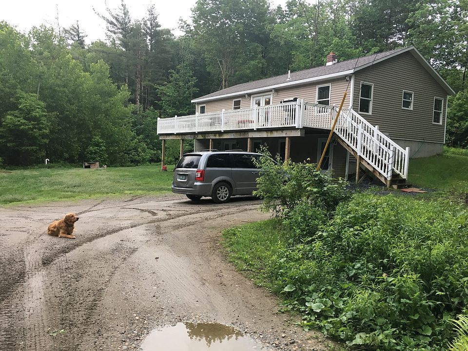 Two story ranch style home located on 2.21 acres in a secluded area. Long driveway, lots of privacy. Finished basement livable space with full bath and kitchen counters and washer dryer hookups. Upstairs has 3 bedrooms, with master bath and full regular bath. Open kitchen with nice cabinetry. Full deck off front 10 by 48. Composite decking and white railings. Very friendly neighborhood and easy excess to off road riding with ATVs. Heating: oil, wood, and pellets