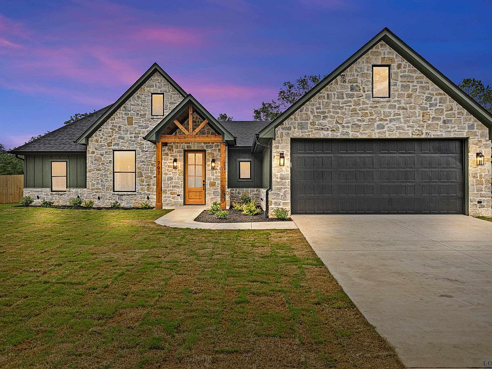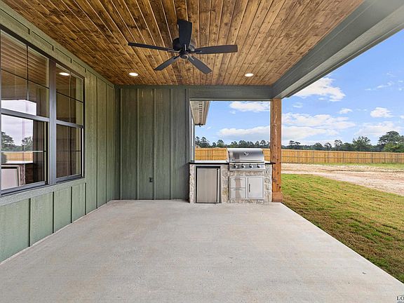 Discover this must-see 4-bedroom home just minutes from I-20 in the award-winning Sabine school district. Step into the welcoming living room with a cathedral ceiling and wood-burning fireplace, leading to an open kitchen with floor-to-ceiling stained cabinets and a walk-in pantry. The split master bedroom and inviting master bath, quartz countertops, large back patio with a built-in BBQ grille and fridge, and a huge fenced yard make this home perfect for pets and hobbies. Enjoy the built-in irrigation system for year-round lawn maintenance, along with upgraded insulation, Low-E windows, and a smart thermostat for energy efficiency and utility savings.