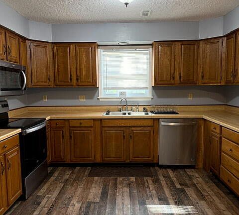 - Included: Dishwasher, Free-Standing Electric Oven, Microwave, Disposal