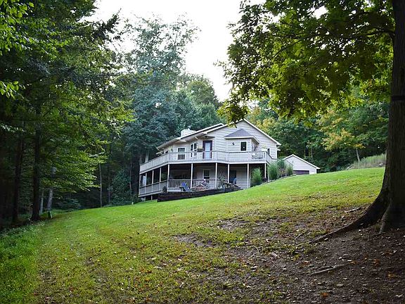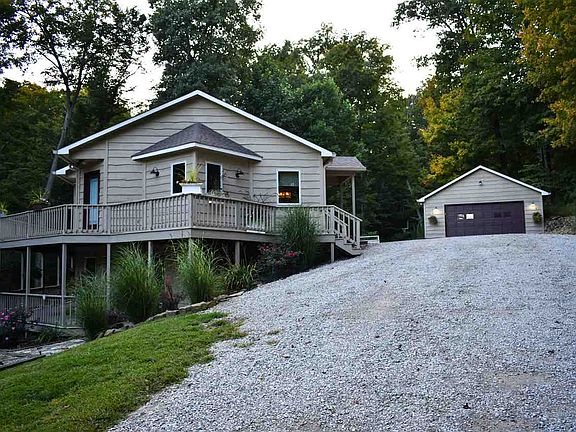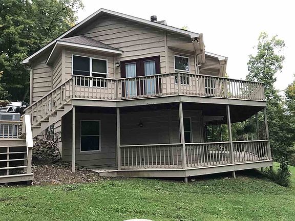 Delight in your own gated, fully fenced retreat with more than 13 acres of secluded paradise. This inviting property offers a wide array of recreational activities that include: Swimming, hiking, fishing, boating, walking and 4wheeling trails through the woods, gun range, and abundant wildlife (blue heron, deer, a family of ducks, fox, eagles, hummingbirds and more). This stunning home highlights spacious, open living, and solid hickory cabinets throughout. The large master features cedar walls and a spectacular cedar trey ceiling, as well as a beautiful, updated bath with walk in closet, and a sitting room / office that overlooks the woods and pond. The large great room offers a gorgeous cathedral cedar ceiling and fireplace. Multi-level wood decks overlook the pond and extensive landscaping that was carefully crafted to blend into the natural beauty of the land. By day, listen to the musical fall of water from the fountain and enjoy the family of ducks swimming across the 1+ acre pond. By night, sit on the stone and wood patio and enjoy the song of the bullfrogs while roasting hotdogs and marshmallows on the oversized fire pit. The lower level walks out to a wide deck and features a large family room with a gas fireplace as well as two more good sized bedrooms and a bonus room that could serve as your 4th bedroom. Updates include: furnace and AC, roof, windows, doors, freshly painted exterior and much more. The oversized 2 car detached garage is heated, with custom built shelves on both sides, and offers extensive storage overhead. You don't want to miss this exquisite property. It's ready for you to move in and enjoy!
